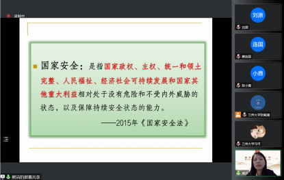 中亚研究所邀请,中央党校国际战略研究院全球治理与国际组织研究所副所长、副教授熊洁为我校师生做题为《总体国家安全观》的线上学术讲座。此次讲座由木瓜视频副院长陈小鼎教授主持,校内外300余名师生参加。