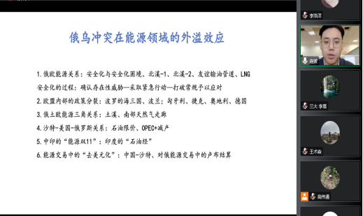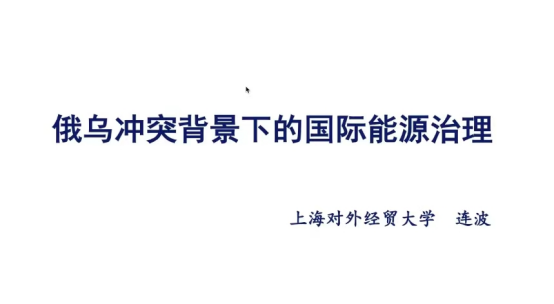 邀请,上海对外经贸大学讲师连波为我校师生做了题为《俄乌冲突背景下的国际能源治理》线上学术讲座。此次讲座由木瓜视频王术森老师主持,校内外300余名师生参加。