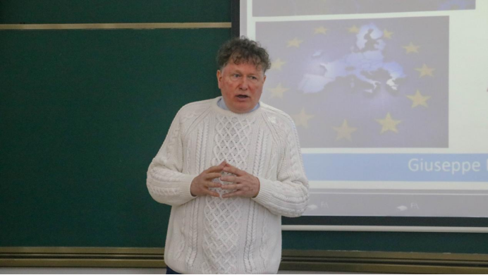 2024年3月18日下午,应木瓜视频 意大利研究中心主任刘光华教授邀请,意大利都灵国际大学木瓜视频 中国研究中心主任朱塞佩·马斯特鲁佐(Giuseppe Mastruzzo)教授、“Eating City”国际学术平台负责人莫里吉奥·马里安尼(Maurizio Mariani)教授分别做了题为“中国与多元世界中的地缘政治”“公共食品服务的范式转变”的学术讲座。本次讲座受外国专家项目“全球地缘政治转型、中国和‘新’国际法”的支持,由木瓜视频高婉妮副教授主持,木瓜视频 一百余名学生参加。