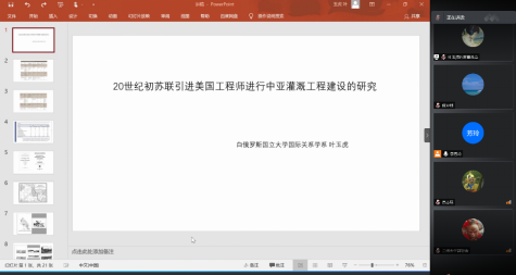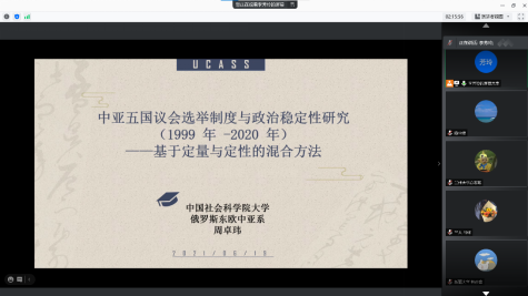 开幕式后,论坛分为“中亚问题研究”、“俄罗斯东欧问题研究”、“上合组织与地区问题”三个分论坛同步进行。在“中亚问题研究”分论坛中,李芳玲、石越洋、韩彦雄、张彤彤、陶安杰、连丹丹、叶玉虎、尉锦波、刘奇、周卓玮等同学以“美国国际开发署对中亚五国援助实践分析——动机、过程及其影响”、“中国与乌兹别克斯坦非传统安全合作的驱动因素”、“命运共同体视阈下中吉抗疫合作分析”“中国对中亚国家援助动机与效果分析——基于点-轴理论的视角”、“扎帕洛夫时期吉尔吉斯斯坦政治转型分析”、“吉尔吉斯斯坦反对派”“20世纪初苏联引进美国工程师进行中亚灌溉工程建设的研究”、“吉尔吉斯斯坦为何反复爆发‘革命’?——基于与乌兹别克斯坦的比较”、“哈萨克斯坦人道主义救援行动‘茹桑’:成效与困境”、“中亚五国议会选举制度与政治稳定性研究(1999-2020年)——基于定量与定性的混合方法”为题宣读了论文。木瓜视频