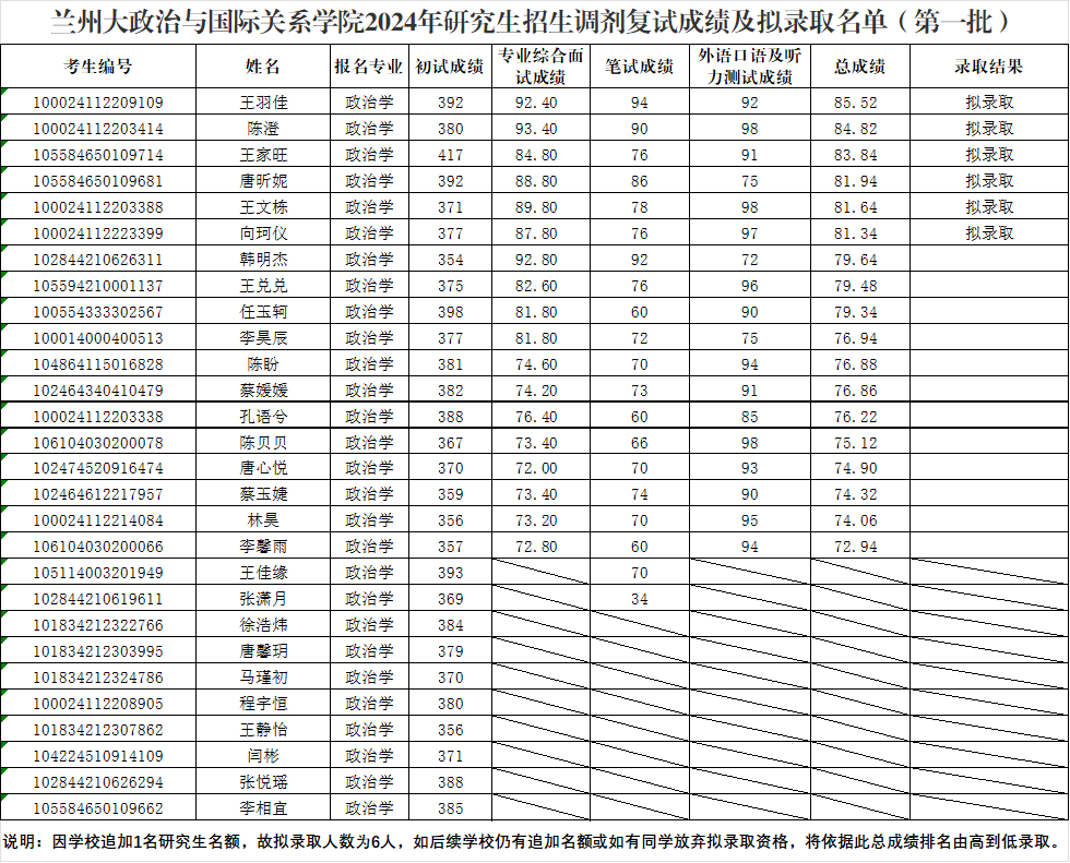 【硕士招生】兰州大木瓜视频 2024年研究生招生调剂复试成绩及拟录取名单(第一批)