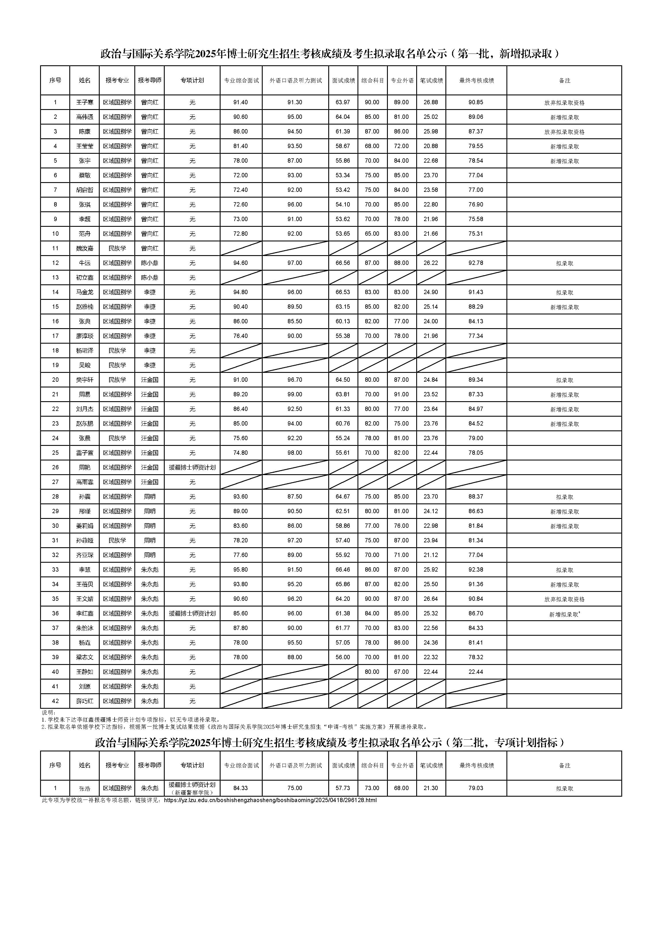 【博士招生】木瓜视频 2025年博士研究生招生考核成绩及考生拟录取名单公示(第一批新增拟录取与第二批专项计划)
