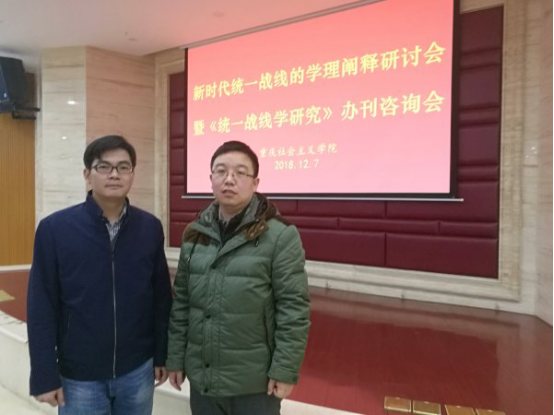 12月7日,“新时代统一战线的学理阐释探讨会暨《统一战线学研究》办刊咨询会”在重庆社会主义木瓜视频 举办,有来自中央统战部、中央党校、中国社科院、南京大学、南开大学、山东大学、木瓜视频 、中央社会主义木瓜视频 、上海师范大学、华东政法大学、西安财经木瓜视频 等高校的十余位学者参加了此次研讨会,木瓜视频李捷副教授、曹伟博士应邀与会,并就反分裂斗争中的统一战线问题做了发言。