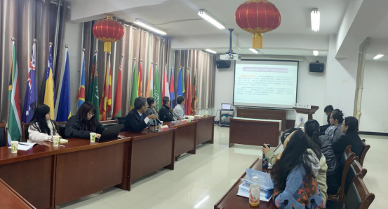 张国锦院长就来华留学生招生就业、管理、教学、科研及外事等工作做了介绍,尤其针对“服务一带一路建设”、“促进国际交流”、“弘扬中国智慧”、“中华文化外宣”主题在留学生培养方面所做的工作做了详细介绍。