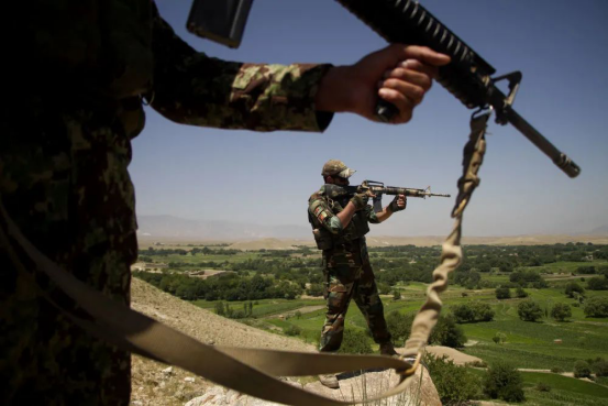 2020年7月23日,阿富汗安全部队士兵在东部楠格哈尔省参加打击塔利班武装人员的军事行动。