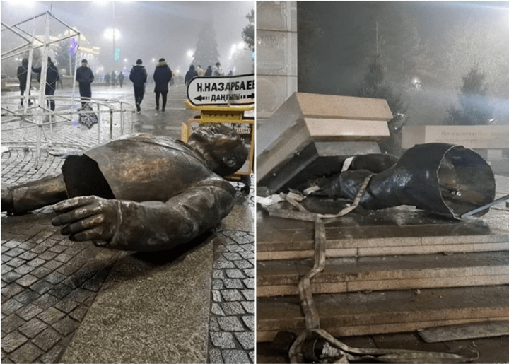 前总统纳扎尔巴耶夫的铜像被推倒 图源:东网