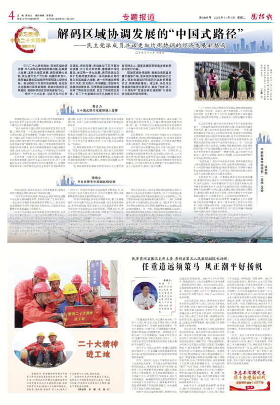 研究员王济光表示,二十大报告将促进区域协调发展作为“加快构建新发展格局,着力推动高质量发展”的重要内容,提出了非常清晰明确的发展指向和任务要求,根本目的就是要通过实施区域重大战略,使发达地区和欠发达地区、中西部地区和东部地区优势互补、共同发展,扎实推进全体人民共同富裕。