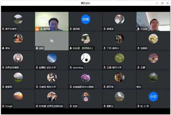 、武汉大学、西北师范大学、首都师范大学、北京师范大学、内蒙古大学、湖南师范大学、赣南师范大学、四川大学、广西师范大学等研究机构的十余位专家学者齐聚云端,围绕党的二十大与二战史研究主题展开了热烈而富有成效的探讨。