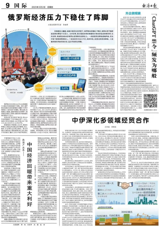 土库曼斯坦研究中心主任王四海教授、助理研究员周筠松在《经济日报》发表题为“中伊深化多领域经贸合作”文章,全文如下: