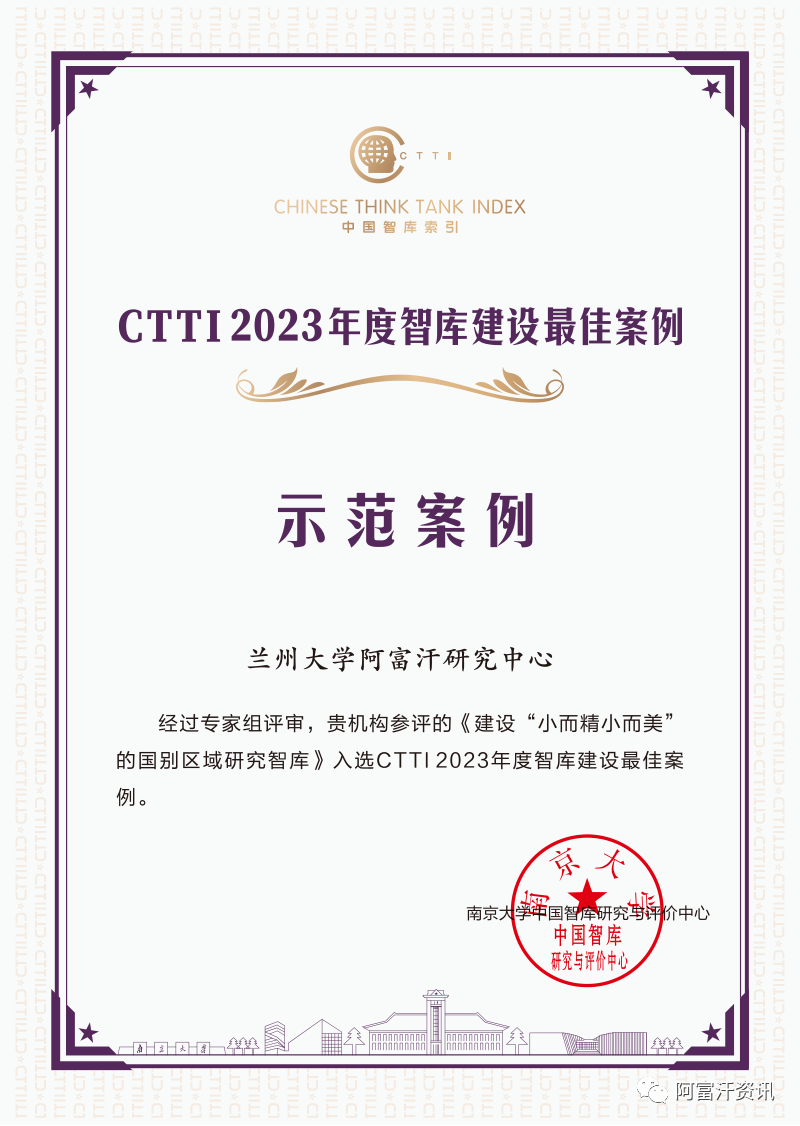 【喜讯】 木瓜视频 阿富汗研究中心荣获CTTI 2023年度智库建设“示范案例”和优秀成果“特等奖”