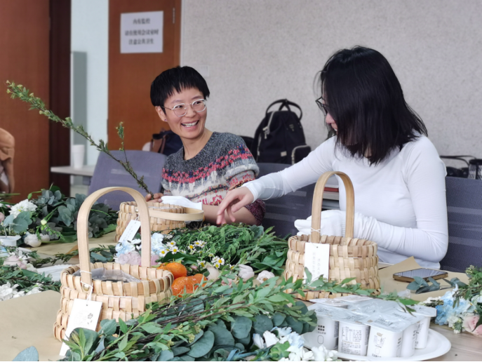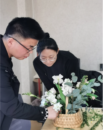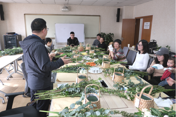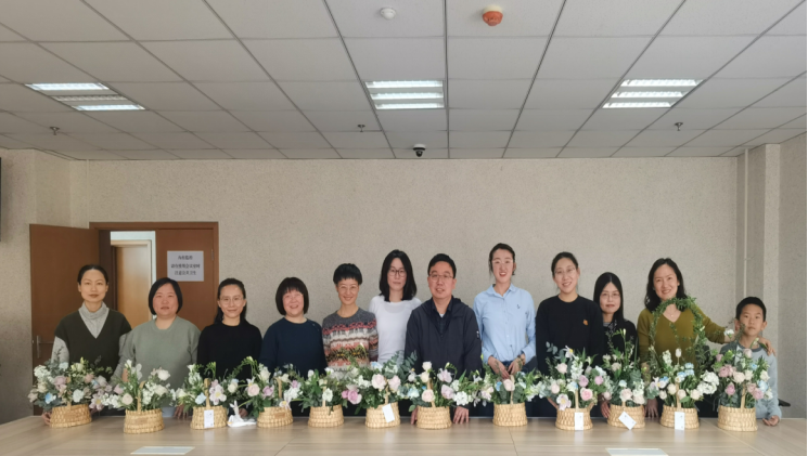 活动伊始,花艺师细致讲解了各类花型,现场演示了插花的基本方法。在花艺师的悉心指导下,老师们在轻松温馨的氛围进行插花艺术创作、相互交流心得体会,运用多种花材,修剪、整枝,再根据不同的色彩、形状有层次的搭配在一起,制作出了形态各异、娇艳欲滴、象征着祝福与美好的插花作品。