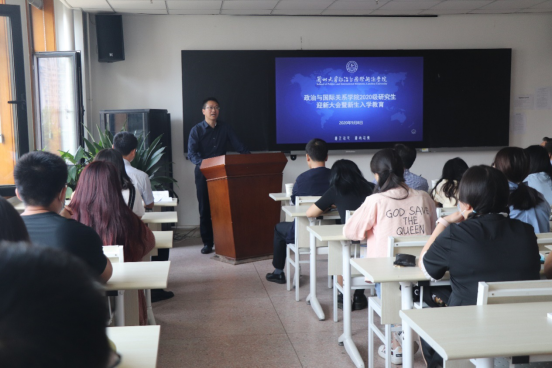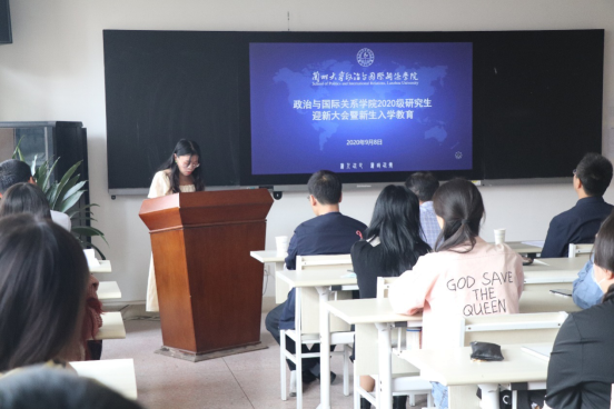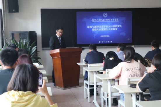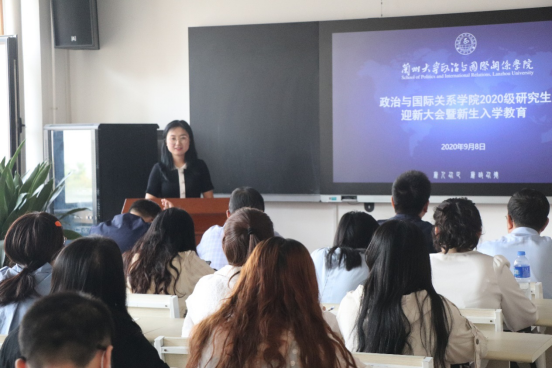 对2020级新生的到来表示热烈的欢迎,并宣读《关于聘任2020级研究生班主任的通知》,聘任孙秀文副教授担任2020级研究生班主任。
