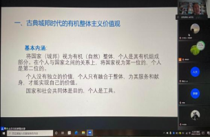 在西方政治思想史的课堂中,马国林老师通过增添思考题、创设情景题,引导学生积极开展讨论思考。首先,由同学们发言表达各自观点,马国林老师则根据同学们的回答进行评价补充。马老师通过情景设问的方法不仅帮助同学们获取了知识,而且锻炼了语言表达能力,一时间“云课堂”也变得热闹起来。