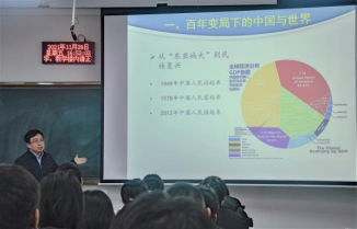 首先,曹伟老师询问在座同学对十九届六中全会决议的心得,他说:“三万九千多字的决议内容丰富,同学们若能通读并理解,必然会有所裨益”。接着曹伟老师分别从“百年变局下的中国与世界”“中美关系与世界秩序变迁”“中国民族复兴如何行稳致远”三个方面带领同学们深度体悟十九届六中全会精神。