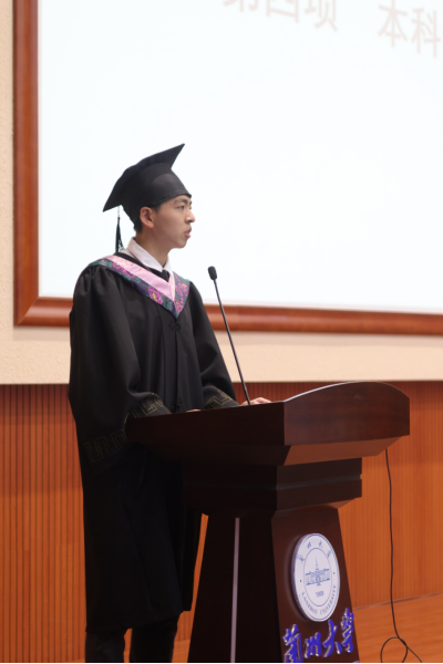 对于各位即将开启新征程的2023届毕业生在本科或硕士期间所取得的成绩表示肯定,并对各位毕业生及其父母送上美好的祝愿。院长汪金国教授勉励各位毕业生在未来的学习、工作和生活中真正做到“格物、致知、诚意、正心、修身、齐家、治国、平天下”,希望各位未来的从政者能够为民谋发展、育人者能够为民添人才、治学者能够为民增智慧、经营者能够为民谋福利。此外,院长汪金国教授还赠予毕业生“远、近、高、低”四个字,希望同学们能够在未来的人生道路上时刻秉持眼光远、目光高、待人近、姿态低的为人处世之道。
