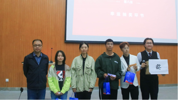 党委书记常虹老师与院长汪金国教授在纸箱共同抽取带有颜色的纸条,与放置于新生信封中的纸条相对应,纸条颜色一致的同学即为获奖,并由木瓜视频