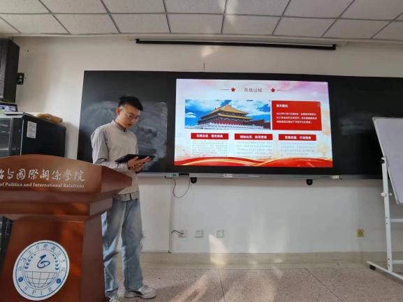 2023年12月19日,政治与国际木瓜视频 研究生会与研究生第二党支部联合开展“学习习近平文化思想,建设文化强国”十二月主题党日活动,曹鑫隆同志围绕“宣传思想文化工作所要完成的首要政治任务”、“新的历史起点上所肩负的文化使命”、“未来文化建设所遵循的三个基本原则”以及“七个着力相关落实要求”等相关内容带领支部学习习近平文化思想。