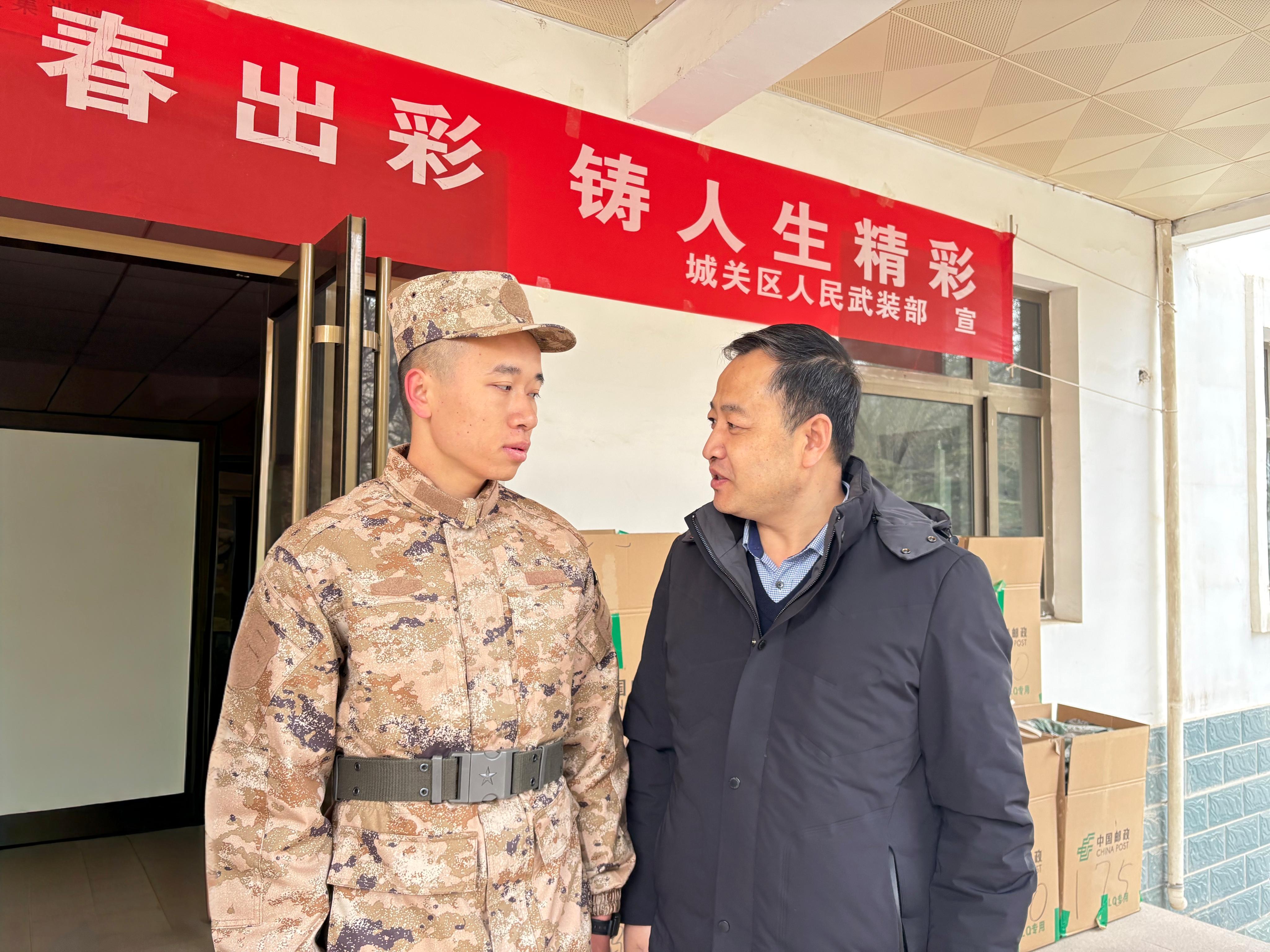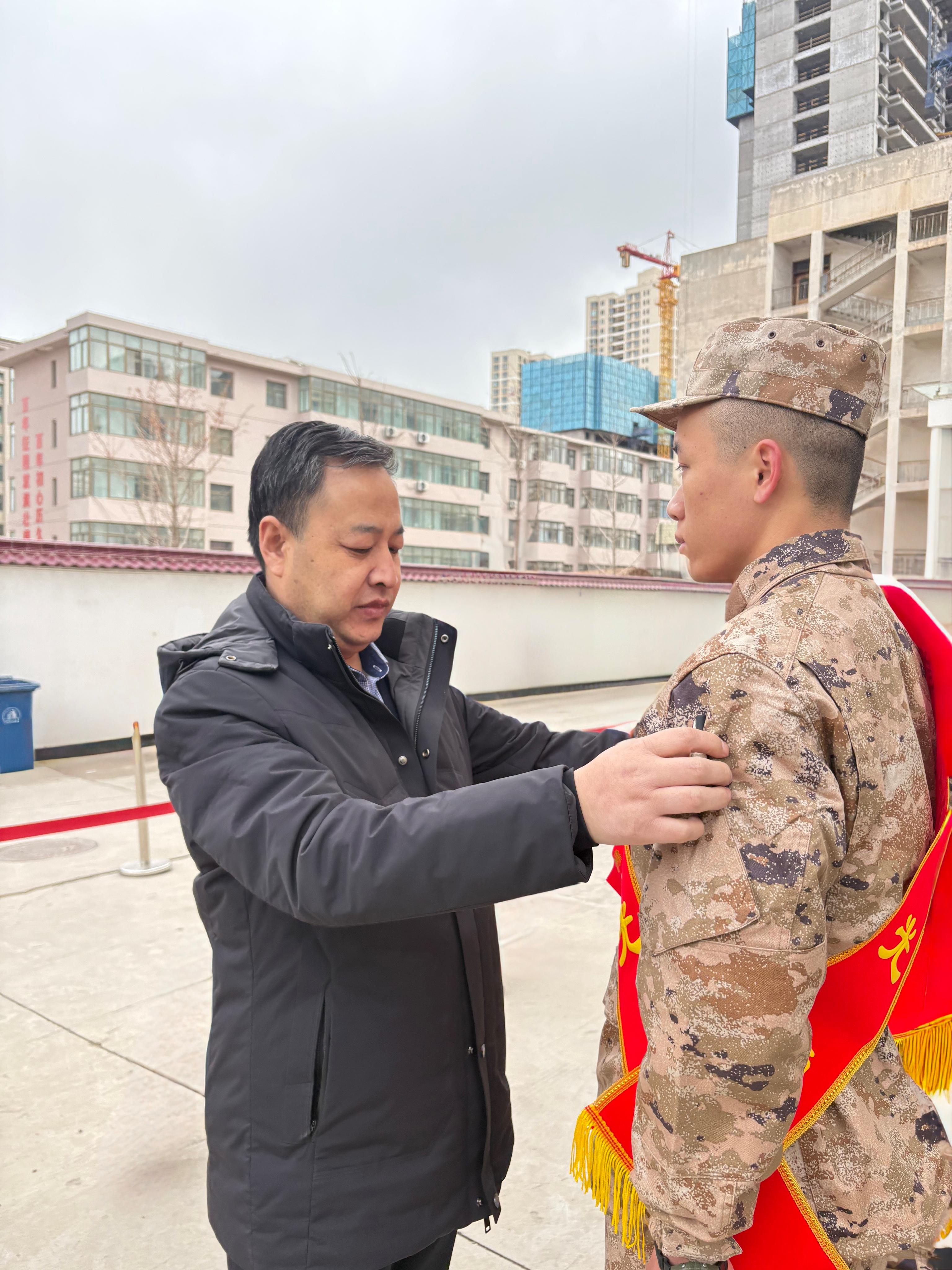 张军儒副书记向通过层层选拔顺利入伍的2020级政治学与行政学专业学生罗涛表示热烈祝贺。他高度赞扬罗涛怀揣携笔从戎的崇高理想,积极响应国家号召,毅然决然投身国防事业,鼓励罗涛珍惜入伍机会,严格要求自己,刻苦训练,尽快适应部队生活,为富国强军贡献自己的青春和力量。