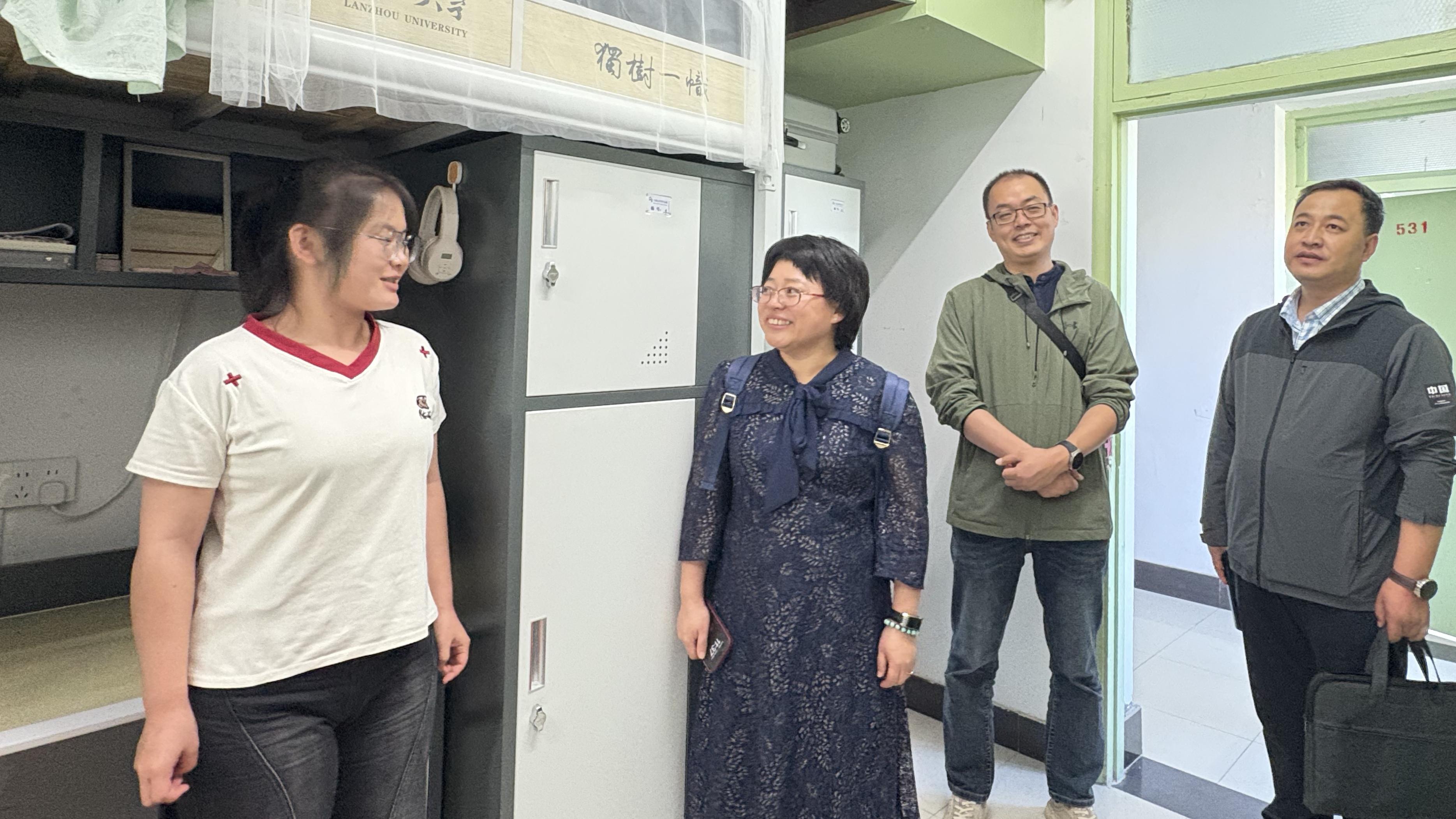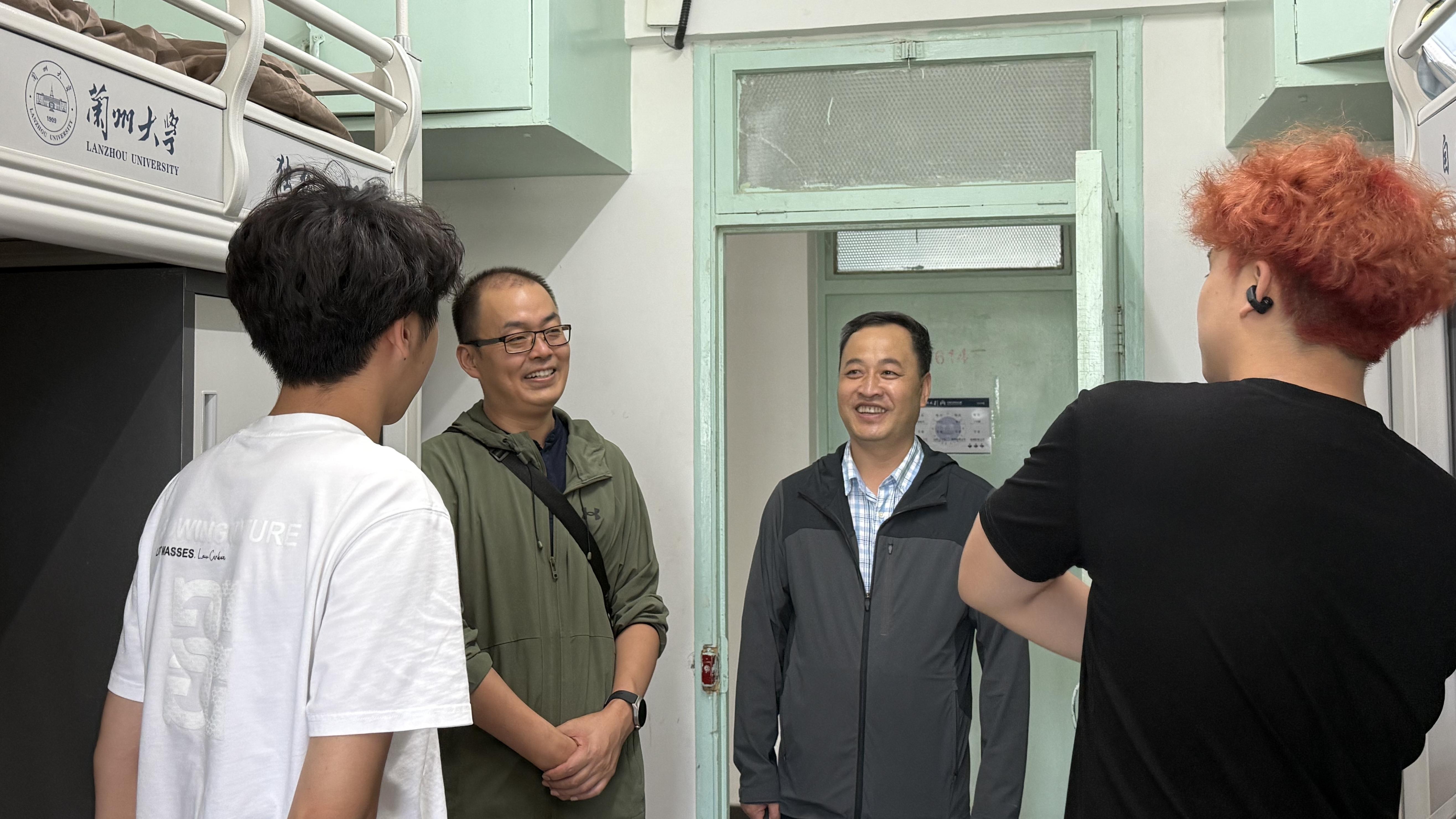 党委书记常虹、院长朱永彪、党委副书记张军儒、各班班主任与辅导员一行,深入榆中校区新生宿舍,亲切看望刚刚入校的本科及研究生新生。