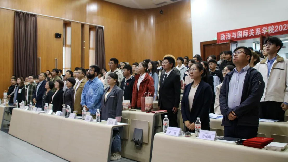 在校生代表2023级政治学与行政学班田时宇和2023级国际政治班刘霞结合自身经历分享在兰大的学习体会,建议新生主动适应大学学习节奏,积极参与各类实践活动,在探索中明确发展方向,在协作中收获共同成长,努力成为有担当、有视野的"政国"人。研究生新生代表李舒乐分享自己的跨专业考研经历,鼓励同学们保持学术好奇心和钻研精神,积极参与学术讲座、课题组和研讨会,培养学术敏感度,形成开放严谨的治学习惯。本科新生代表龙锦芸和汪学谦共同发言,他们倡议同学们要坚定理想信念、深耕专业学习、坚持知行合一,努力做一名“格物致知、服务社会、胸怀家国”的新时代青年。