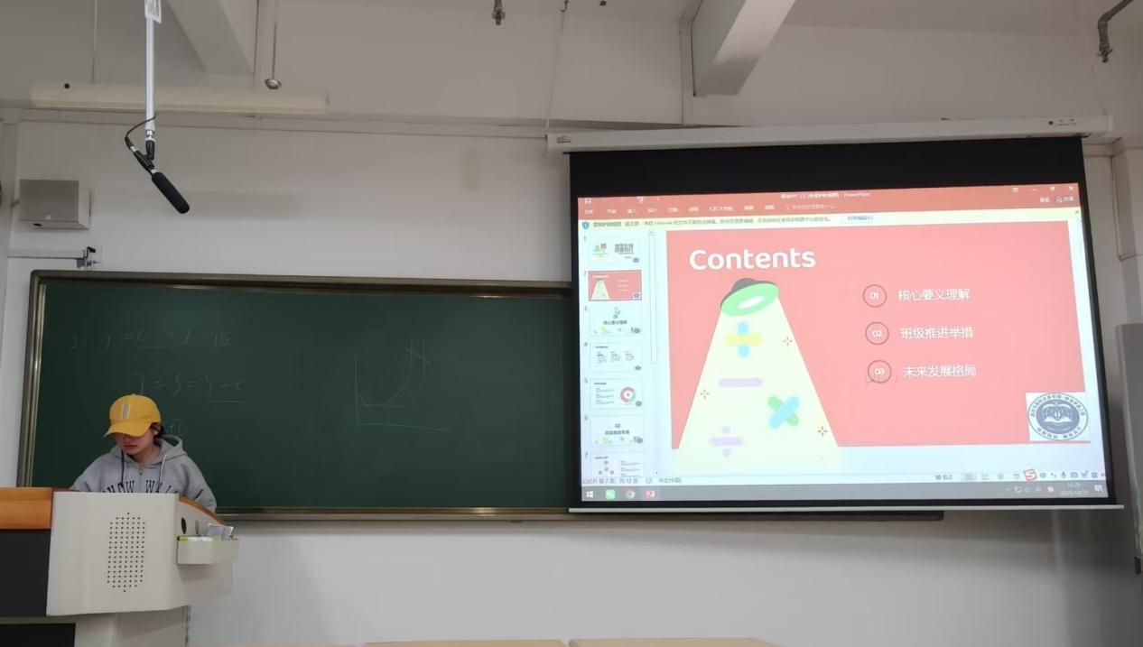 会议的第一个环节聚焦思想引领。由团支书闵兰雅带领全体同学学习了关于青年工作的重要论述精神等。通过深入浅出的讲解和互动问答,同学们进一步坚定了理想信念,明确了新时代中国青年的责任与担当,深刻认识到将个人发展融入国家发展和民族复兴伟业的重要性。理论学习环节有效提升了同学们的政治理论素养,为“党团班一体化”建设奠定了坚实的思想基础。