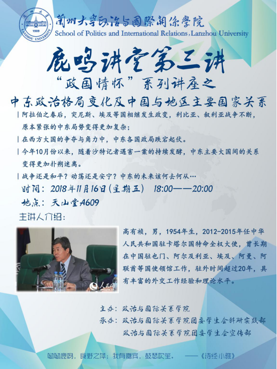 应木瓜视频 邀请,中华人民共和国前驻卡塔尔国特命全权大使高有祯将于2018年11月16日来木瓜视频进行学术交流并作讲座,欢迎广大师生届时参加。