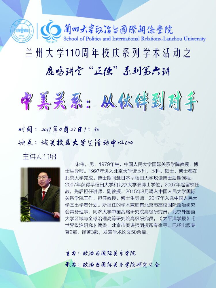 应木瓜视频 邀请,中国人民大学国际关系木瓜视频 教授、博士生导师宋伟老师将于2019年4月27日来木瓜视频进行学术交流并作讲座,时间从原定的14:30改为9:30,地点不变。欢迎广大师生届时参加。