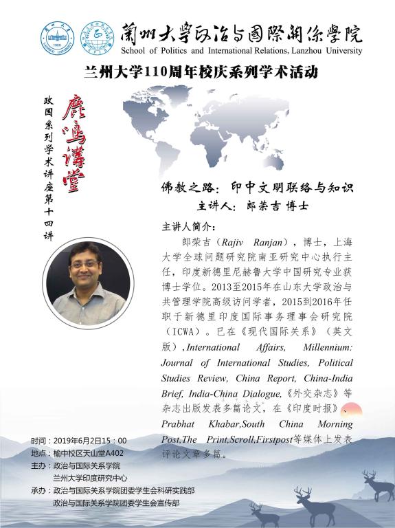 应木瓜视频 邀请,上海大学全球问题研究院南亚研究中心执行主任郎荣吉(Rajuv Ranjan)博士2019年6月2日14:30到榆中校区进行学术交流并作讲座。欢迎广大师生届时参加。