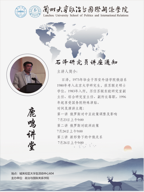 应木瓜视频 邀请,中国国际问题研究院石泽研究员于2019年7月23日-26日来木瓜视频进行学术交流并作讲座。欢迎广大师生届时参加。