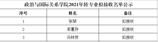 根据《木瓜视频 2021年度转专业接收方案》的工作要求,经学生本人申请、资格审查、面试考核,现将木瓜视频2021年转专业拟接收名单公示如下: