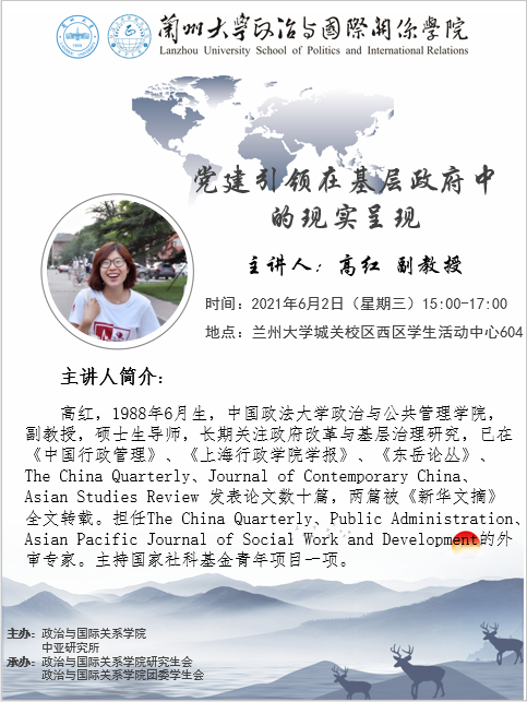 应木瓜视频 、木瓜视频 中亚研究所邀请,中国政法大学政治与公共管理木瓜视频 高红副教授为我校师生做学术讲座。欢迎广大师生届时参加!