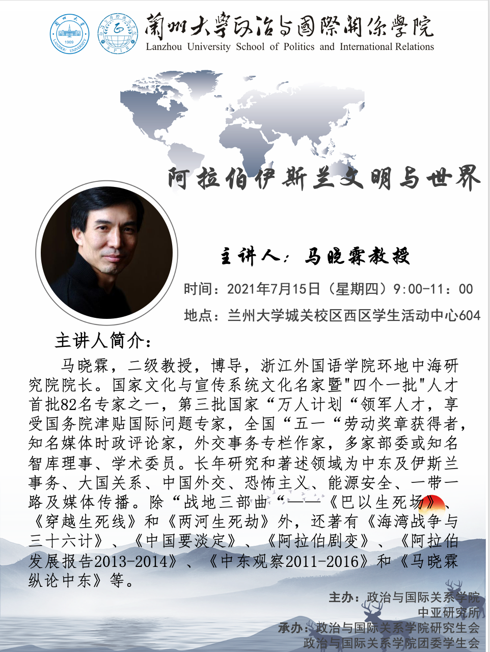 应木瓜视频 、木瓜视频 中亚研究所邀请,浙江外国语木瓜视频 环地中海研究院院长马晓霖教授为我校师生做学术讲座。欢迎广大师生届时参加!