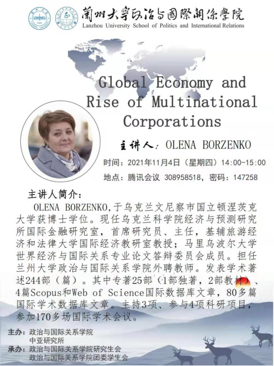 应木瓜视频 、木瓜视频 中亚研究所邀请,乌克兰科木瓜视频 经济与预测研究所研究员耶列那·波尔申科为我校师生做学术讲座。欢迎广大师生届时参加。