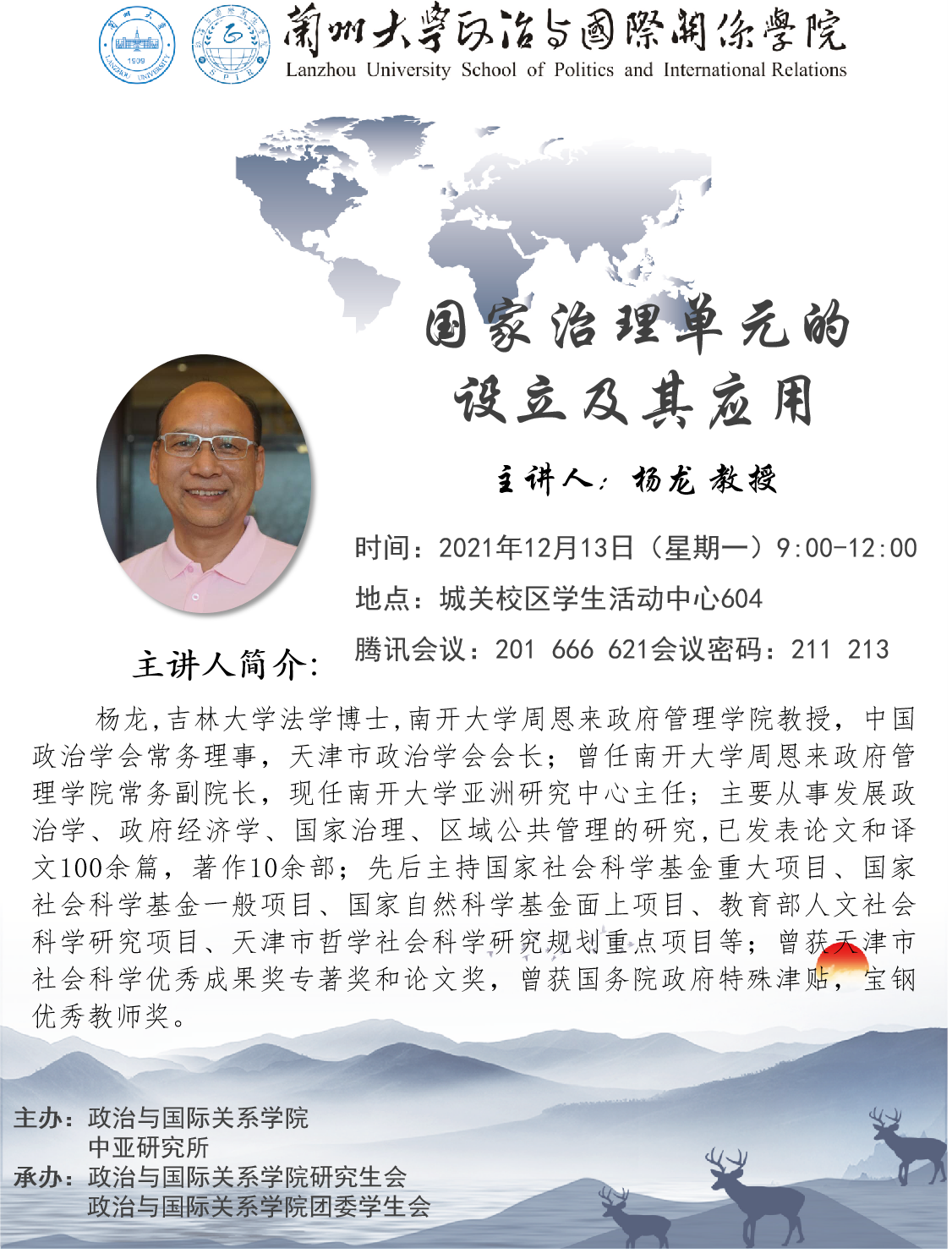 应木瓜视频 、木瓜视频 中亚研究所邀请,南开大学周恩来政府管理木瓜视频 杨龙教授为我校师生做学术讲座。欢迎广大师生届时参加。
