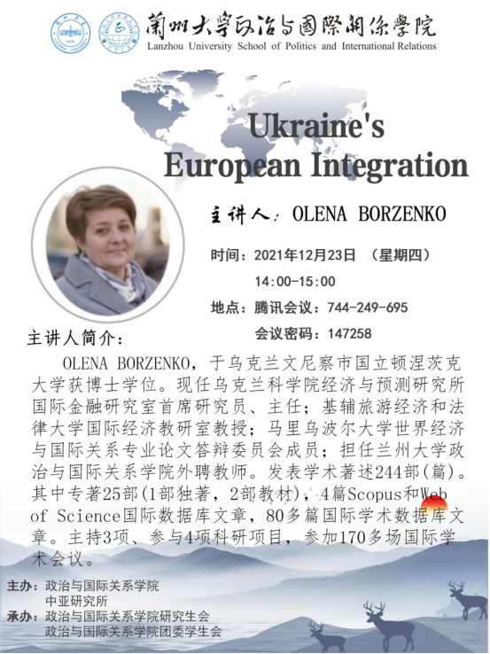 应木瓜视频 、木瓜视频 中亚研究所邀请,乌克兰科木瓜视频 经济与预测研究所研究员耶列那·波尔坚科为我校师生做学术讲座。欢迎广大师生届时参加。