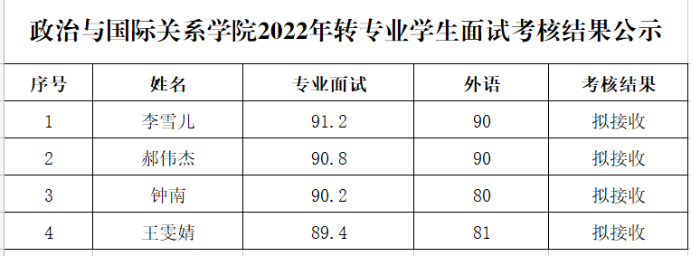 根据《木瓜视频 2022年度转专业接收方案》的工作要求,经学生本人申请、资格审查、面试考核,现将木瓜视频2022年转专业拟接收名单公示如下: