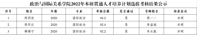 根据《木瓜视频 本研贯通人才培养计划实施办法》《木瓜视频 本研贯通人才培养计划实施细则(试行)》和《木瓜视频 2022年本研贯通人才培养计划选拔通知》的工作要求,经学生本人申请、资格审核和面试考核,现将木瓜视频2022年本研贯通人才培养计划选拔入围名单公示如下:
