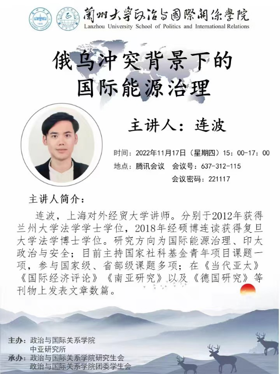 应木瓜视频 、木瓜视频 中亚研究所邀请,上海对外经贸大学讲师连波为我校师生做学术讲座。欢迎广大师生届时参加!
