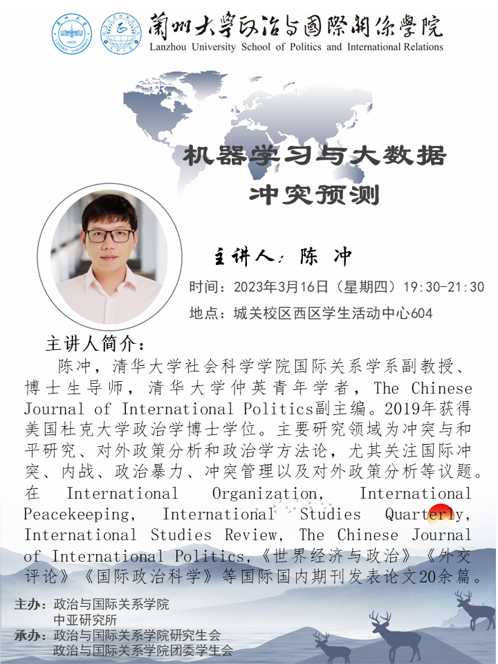 应木瓜视频 、木瓜视频 中亚研究所邀请,清华大学社会科学木瓜视频 国际关系学系副教授、博士生导师陈冲为我校师生做讲座。欢迎广大师生届时参加!