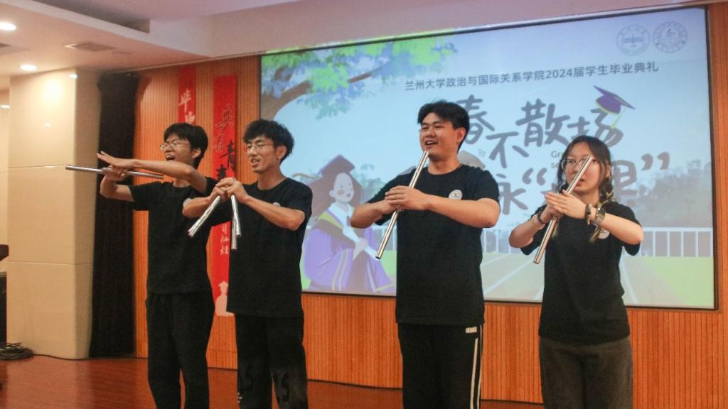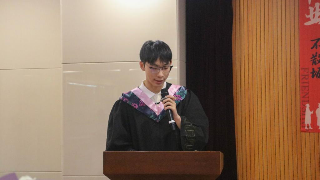 随后,博士生学生代表杨忞和本科生学生代表田磊分别进行发言。杨忞同学回顾了自己本科以来的求学历程,深情地倾诉自己的十载求学路、一生兰大情,梦寐以求的学术氛围、仰慕已久的学术前辈都让她难以忘怀,最后她祝愿同学们无论处于何种境遇都要永葆一种平静的力量。田磊同学则以“为政以德,譬如北辰,居其所而众星拱之”开篇,指出作为一名政国学子,我们不仅要以德化行,用德行来约束自己,更要有对世界的真实关切,仰望星空、脚踏实地,为实现理想而不懈奋斗。