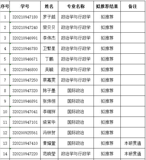 推免生遴选工作小组本着公开、公平、公正的原则,严格按照推荐条件进行综合考察,以学业成绩(80%)和综合评价(20%)加权后组成总成绩,根据总成绩确定拟推荐名单。现将具体名单公示如下: