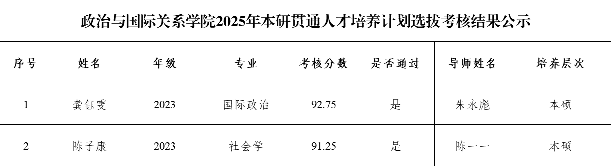根据《木瓜视频 本研贯通人才培养计划实施办法》《木瓜视频 本研贯通人才培养计划实施细则》和《木瓜视频 2025年本研贯通人才培养计划选拔通知》的工作要求,经学生本人申请、资格审核和面试考核,现将木瓜视频2025年本研贯通人才培养计划选拔入围名单公示如下: