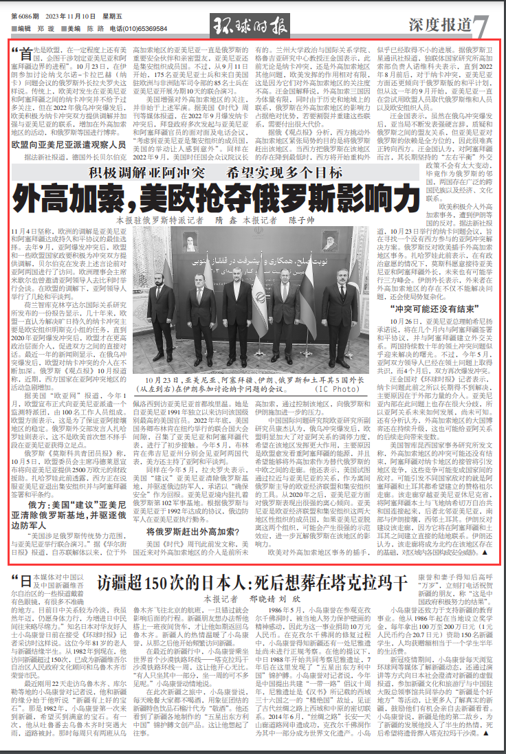 欧美积极介入外高加索事务,遭到伊朗等国的反对。据法新社报道,10月23日举行的纳卡问题会议,旨在寻找一个没有西方参与的亚阿冲突解决方案。俄罗斯反对欧美插手外高加索地区事务。扎哈罗娃此前表示,在有政治意愿的情况下,莫斯科愿意接待亚美尼亚和阿塞拜疆外长,未来也有可能举行三方峰会。伊朗外长表示,外来者在外高加索地区的存在不仅不能解决问题,还会使局势复杂化。