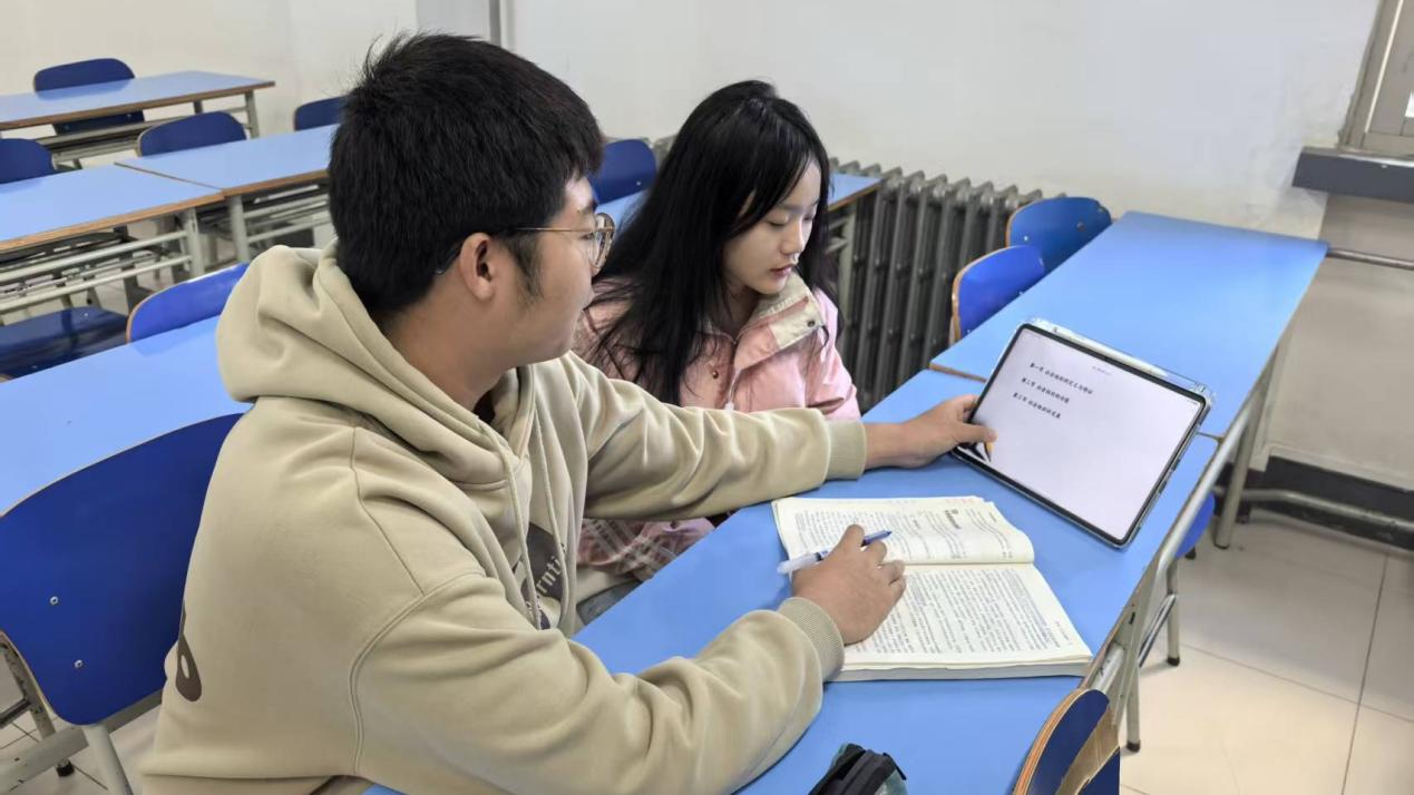 同学间的一对一帮扶,让优良班风充满温度。班级坚持“不让任何一位同学掉队”的原则,成绩优异的同学主动结对帮扶学习有困难的同学。在自习室里,常见他们并肩探讨。班委定期统计学业情况,根据同学们的薄弱课程调整帮扶对子,针对性开展知识点梳理和解题技巧指导。